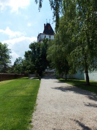 Bílá vodárenská věž v zámeckém parku v Hradci nad Moravicí